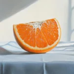 There’s something peaceful about a single orange slice, glowing in morning light. The soft cloth, clean lines, and warm shadows make this moment still and bright. Making you almost able to taste the sweetness!