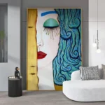 It’s the perfect painting to add a splash of elegance to your home. ‘Starry Tears’ features a woman with hair-like waves. The composition is simple and elegant, with a color palette that makes it pop on any wall!