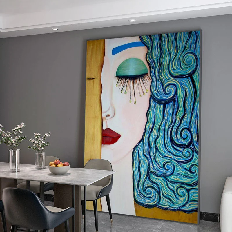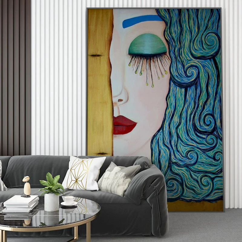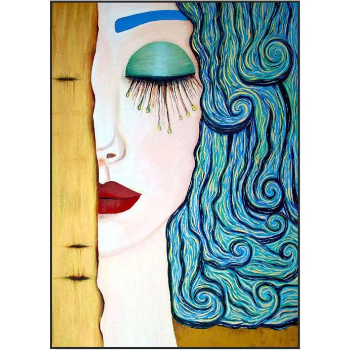 It’s the perfect painting to add a splash of elegance to your home. ‘Starry Tears’ features a woman with hair-like waves. The composition is simple and elegant, with a color palette that makes it pop on any wall!