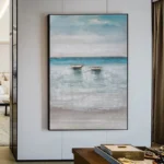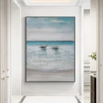This beautiful, melancholic artwork tells the story of two sailors stranded on a deserted island in the sea. The two abandoned boats are all that’s left to help them cross the stunning, endless horizon.