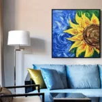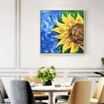 ‘Sunflower Days’ is a burst of sunshine! The golden sunflower comes alive with bold strokes, surrounded by a swirling blue sky. It’s the perfect way to bring nature’s brightness into your home, no matter the season.