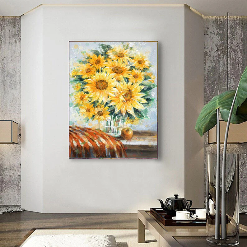 Who doesn’t get a smile on their face when they see a merry sunflower on the wall? Inspired by the work of Vincent van Gogh, this realistic sunflower will cheer up any home interior with beautiful style!