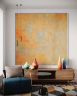 As a large, impressive statement piece, “Sunstone Echoes” is designed to be the warm, beating heart of a room. Its square format is perfect for creating a powerful focal point above a sofa, console, or in a spacious entryway. This artwork is a perfect match for Rustic, Boho Chic, Minimalist, and Modern interiors, adding a touch of understated, earthy elegance and a calming, cohesive energy to your home.