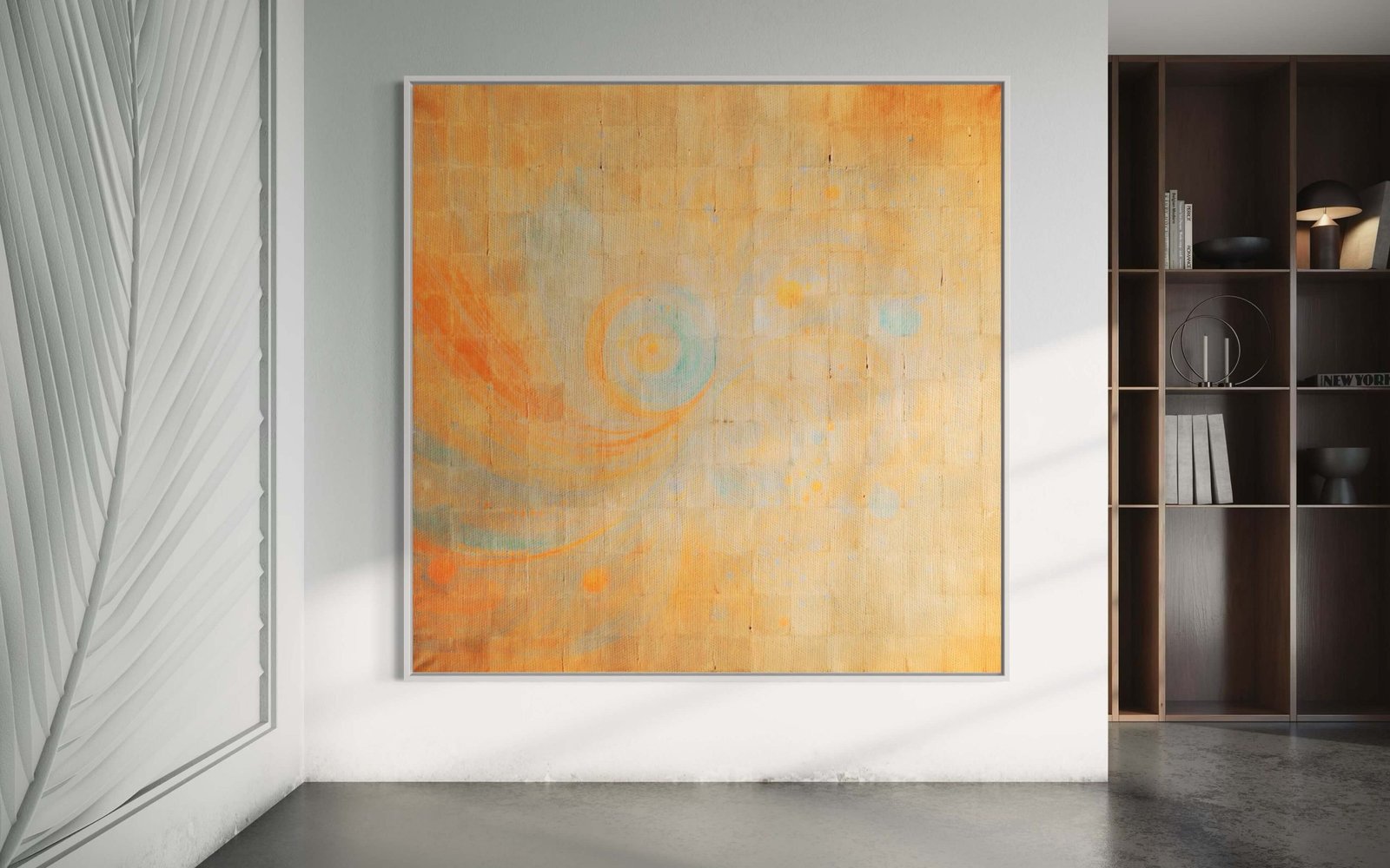As a large, impressive statement piece, “Sunstone Echoes” is designed to be the warm, beating heart of a room. Its square format is perfect for creating a powerful focal point above a sofa, console, or in a spacious entryway. This artwork is a perfect match for Rustic, Boho Chic, Minimalist, and Modern interiors, adding a touch of understated, earthy elegance and a calming, cohesive energy to your home.