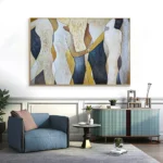 This unique, abstract artwork ‘Talk’ is all about human connections and how beautifully exciting it can be to meet new people. Its cosy and well-matching colours make sure this painting blends in every room perfectly, adding a touch of warmth.