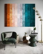 “Terra & Teal” is the ultimate statement piece for a stylish, modern interior. Its sophisticated and versatile design makes it an ideal focal point for a contemporary living room, a calming accent in a bedroom, or a chic addition to a home office. Let this beautiful piece of art bring a curated, designer touch and a rich, grounding mood to your walls.