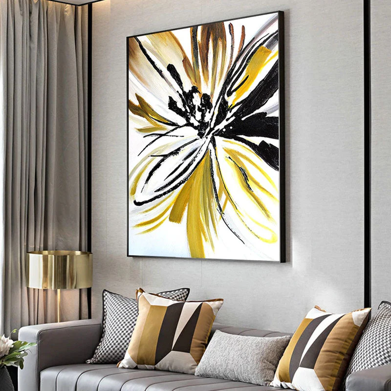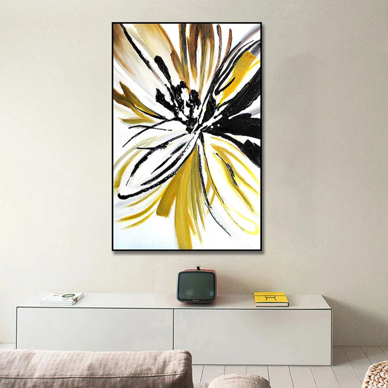 The Abstract Flower bursts with bold strokes of black and gold, capturing the essence of nature with a modern twist. It’s a statement piece that brings energy and elegance to your space, blooming endlessly on your wall.