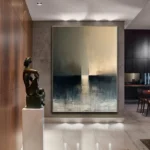 Chromatic Strata Elevate your interior with the sophisticated rhythm of “Chromatic Strata.” This stunning abstract artwork is a modern symphony