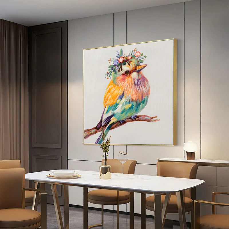 Doesn’t she look adorable with her little flower crown? Her beautiful colors create a vibrant sight, that puts a smile on your face every time you walk past it! Create a wonderful, natural atmosphere anywhere with this lovely piece!