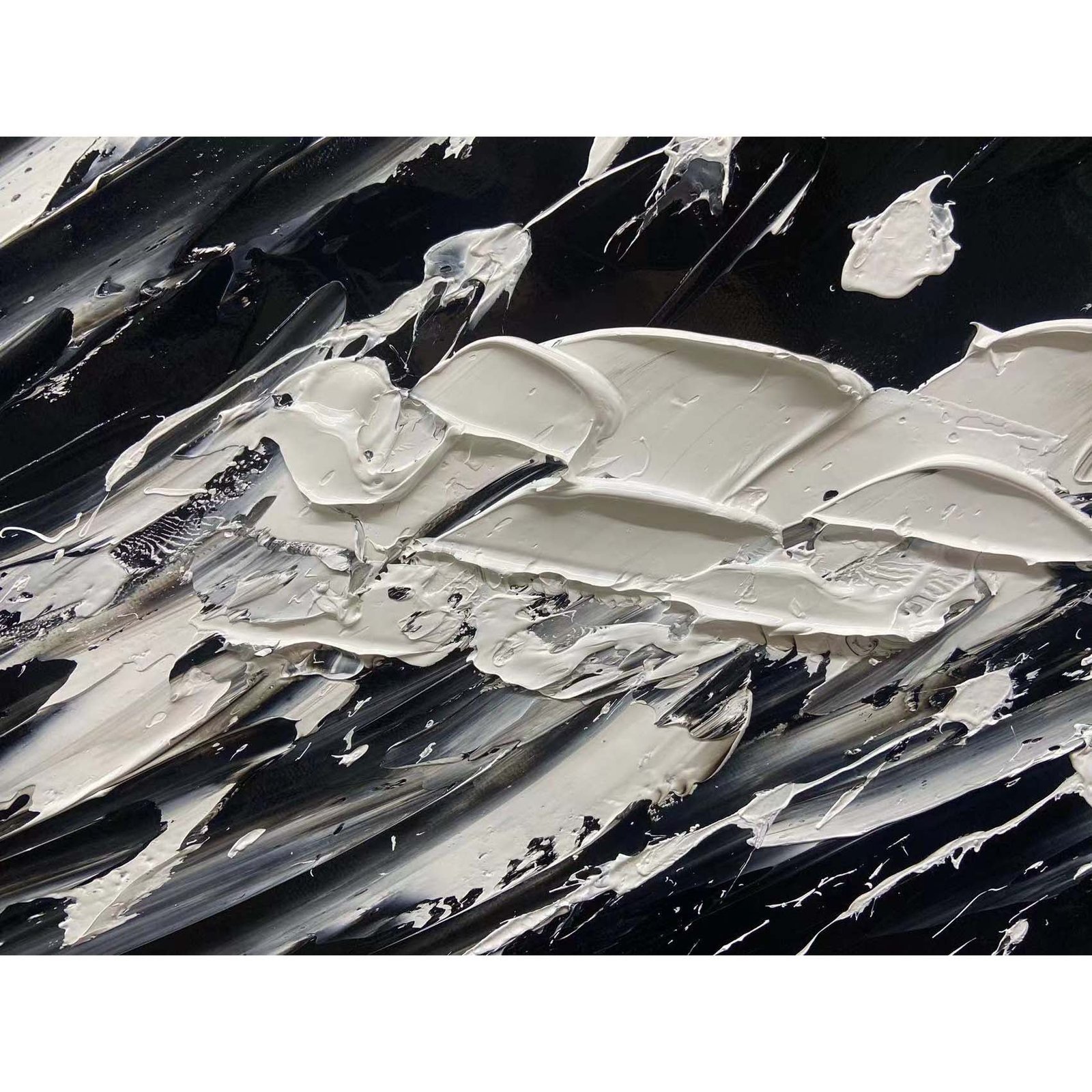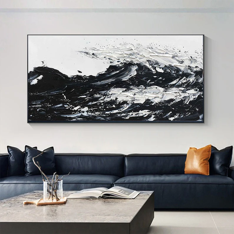 Fierce, powerful, and glorious, this is ‘The Black Wave’. This stunning composition shows us the power of nature in beautiful black-and-white colors. The dynamic brushstrokes give a sense of movement, making you almost hear the waves crash!â�