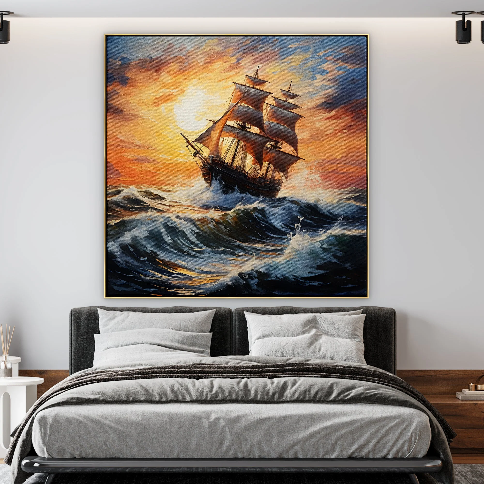 All our frames are crafted and inspected by professionals using Czech pine wood and finger joints to ensure quality. A gesso coating is applied for added stiffness and longevity.Our paintings are made with non-toxic oil paint on the highest grade linen canvas. The result is art that withstands increased humidity, remains odor-free, and does not fade over time.