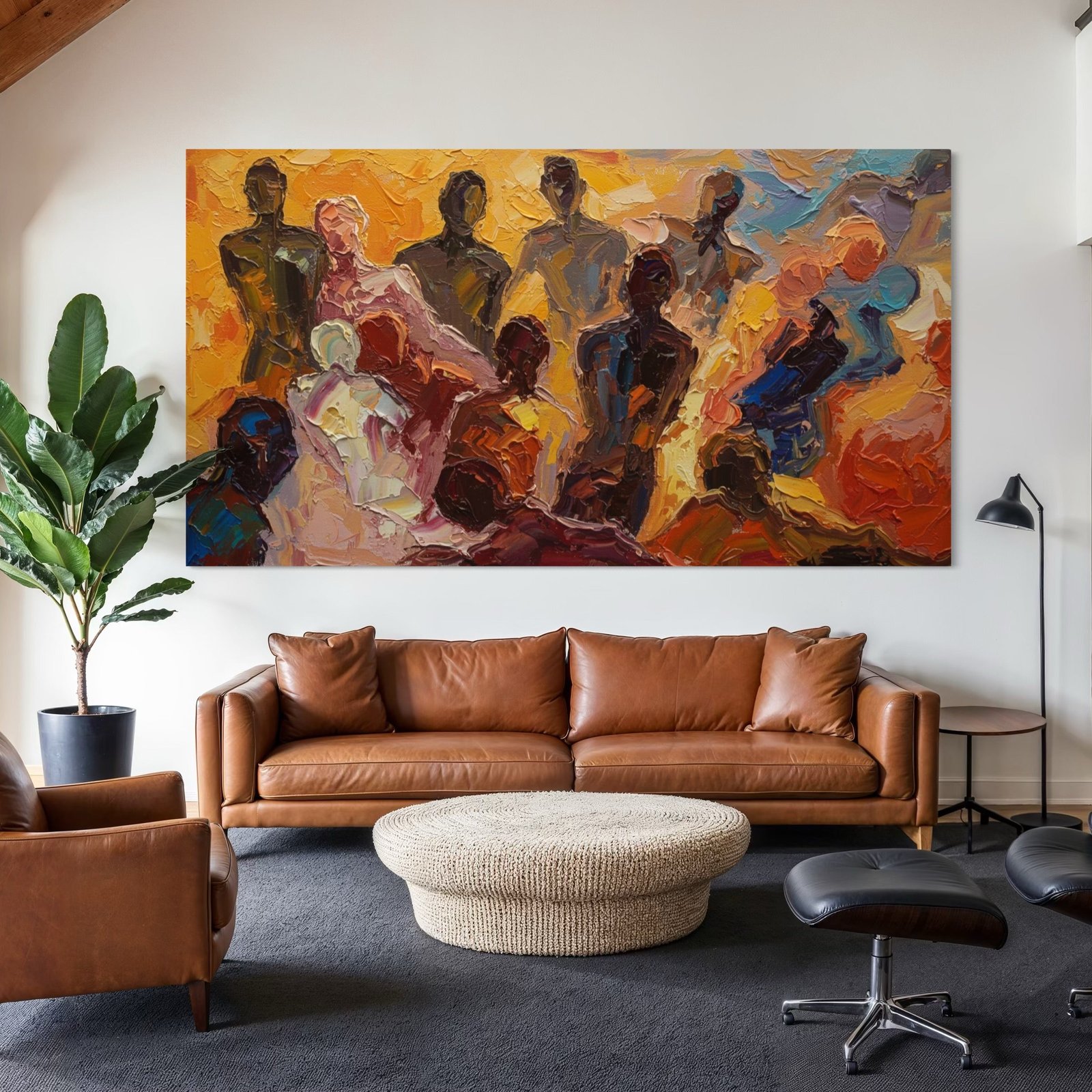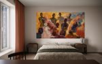 As a powerful and soulful centerpiece, “The Golden Assembly” is the perfect statement piece for a living room, dining area, or a welcoming office space. Its panoramic format and warm, inviting energy are ideal for creating a focal point that sparks conversation and inspires a sense of community. This is more than art; it is a celebration of the human spirit.