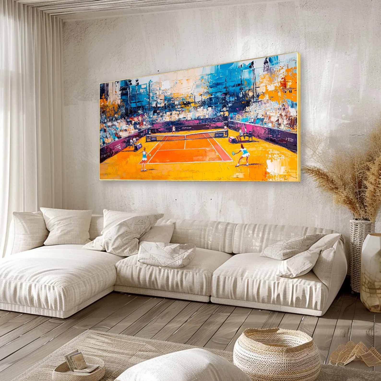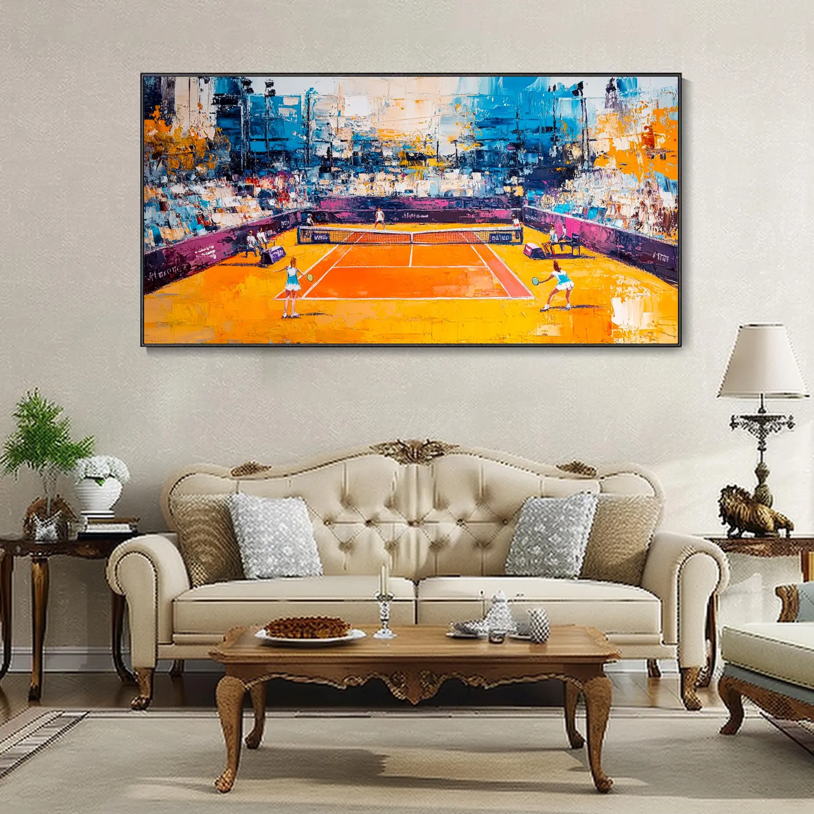 Feel the excitement of the game with ‘The Grand Slam’. With vibrant colors and a lively composition, this piece brings high-level tennis straight to your home! Whether you’re a fan of tennis or not, this piece is sure to brighten up your spaces!