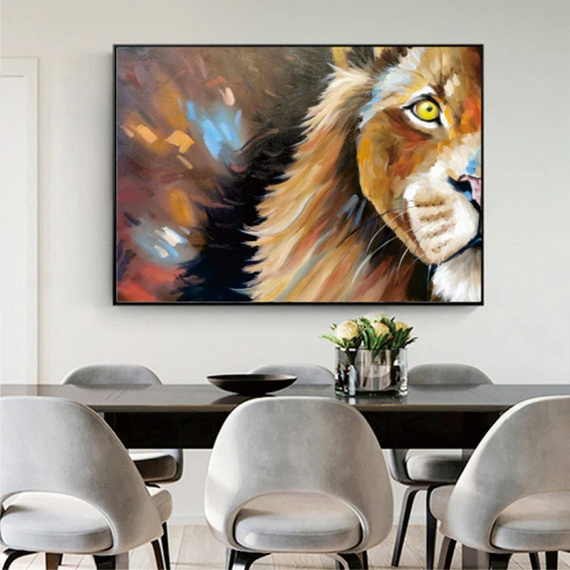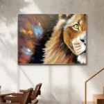 In this captivating portrait, a majestic lion locks eyes with you in ”The Hunter.” The intensity of the gaze displays strength and determination, while the artist’s skillful brushstrokes bring out the wild elegance, making it a powerful addition to any home interior.