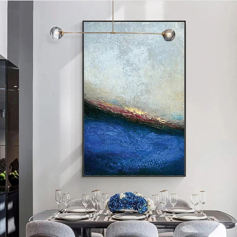 The Kraken captures the mysterious depths of the ocean with its stunning blue hues and textured waves. This abstract masterpiece adds an element of intrigue and elegance to any room, enhancing it with its captivating presence.