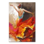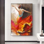 Feel the passion and grace in this stunning painting, where a dancer’s fluid motion is beautifully captured in vivid red and orange colors. It’s a piece that will bring warmth and energy to your space.
