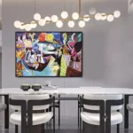 ‘The Magical Night’ is a bright composition that will make your walls come alive! The colors are vibrant, and the image is wonderful. It’s abstract because the artist wanted to portray a feeling of wonder and awe at the beauty of the night!