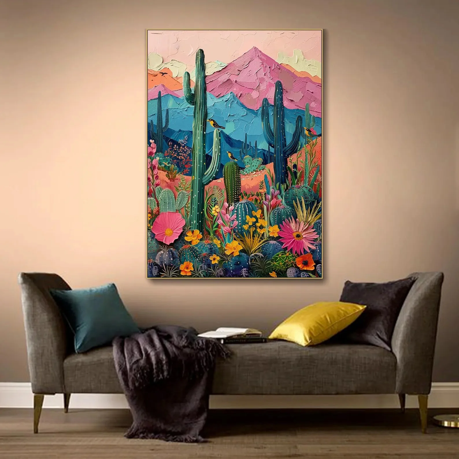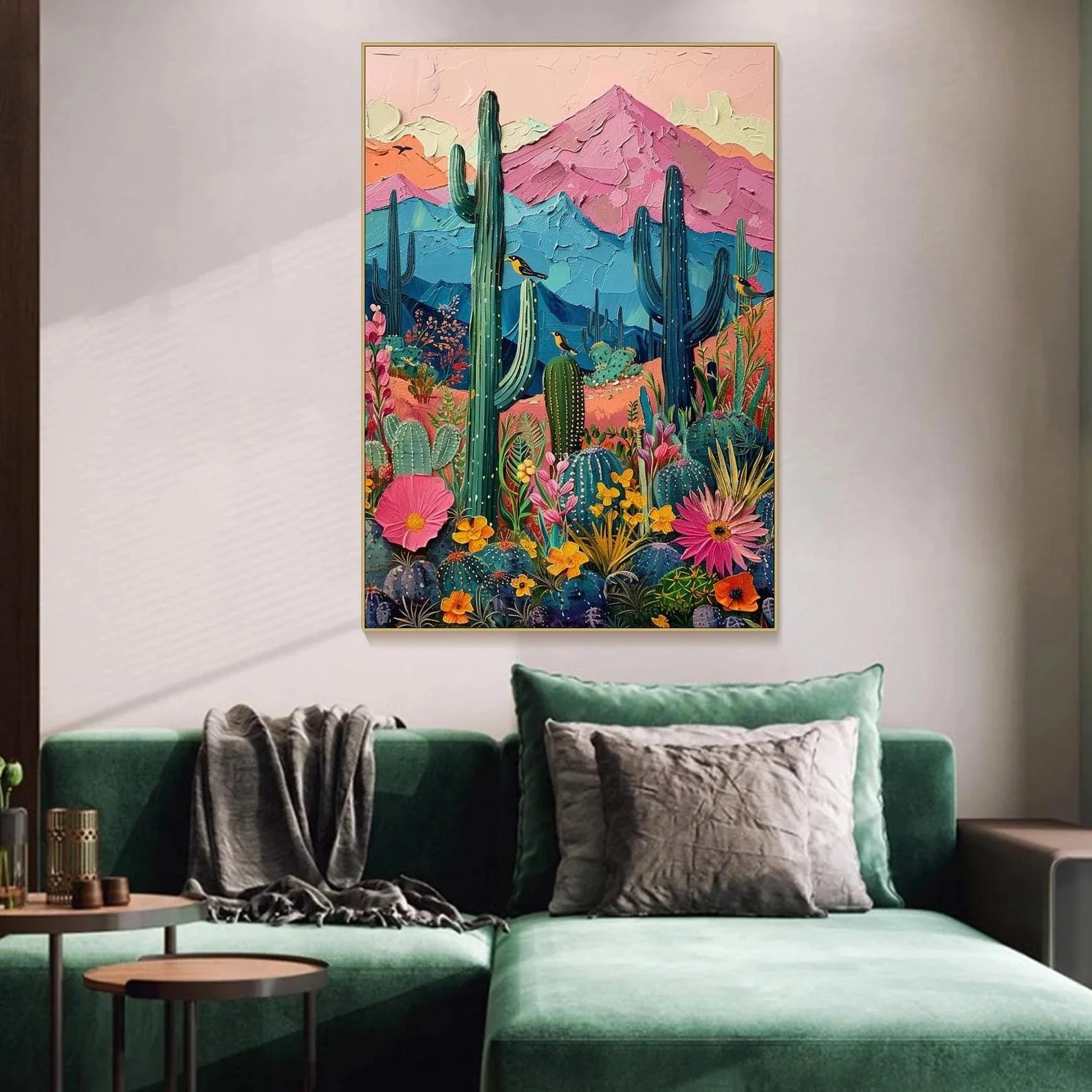 Eden’s Cascade: A Vibrant Textured Landscape Canvas Painting of the Mountains