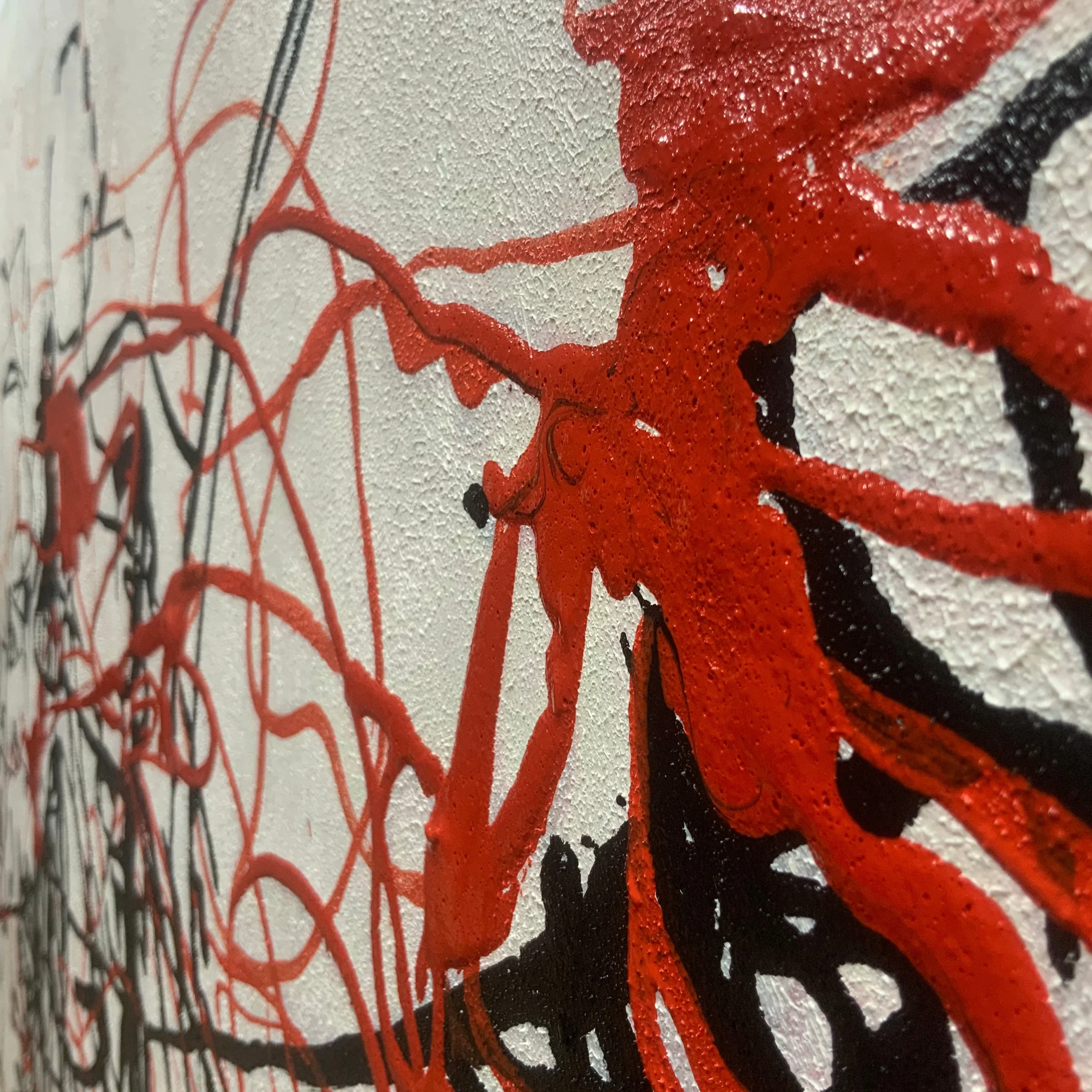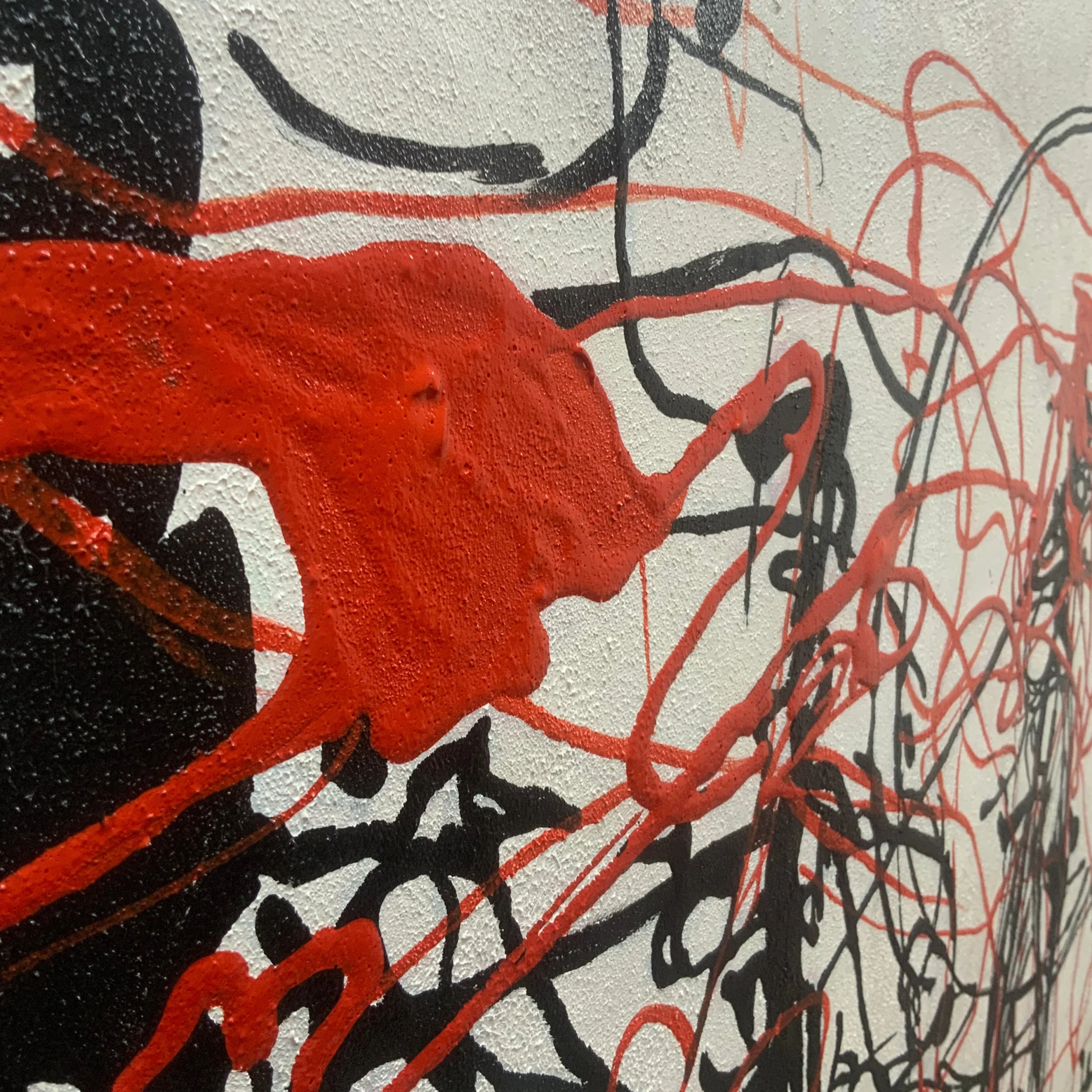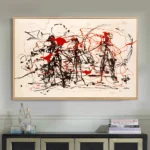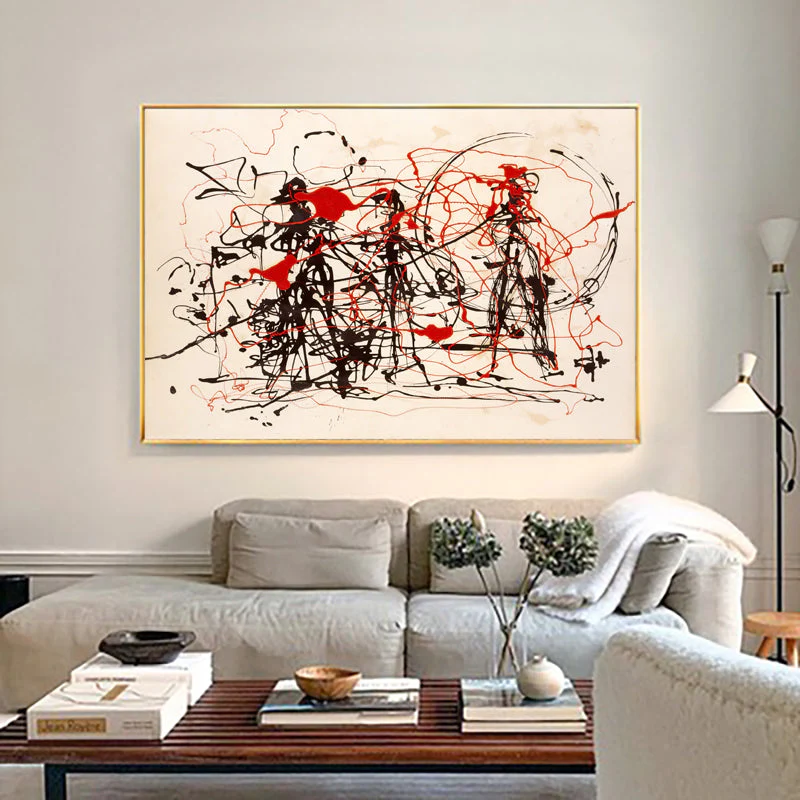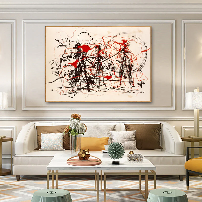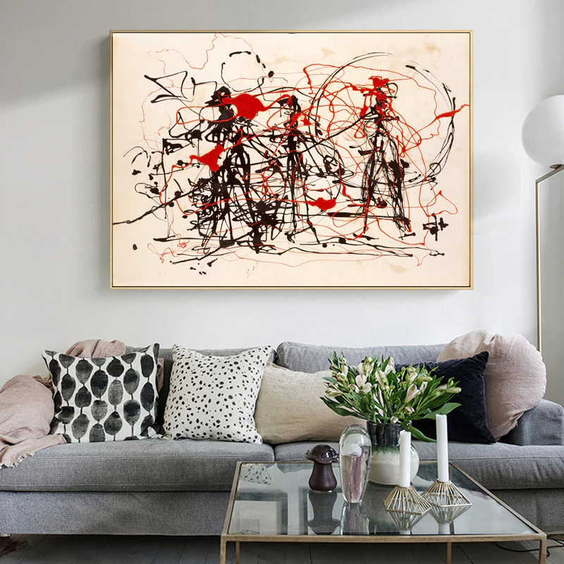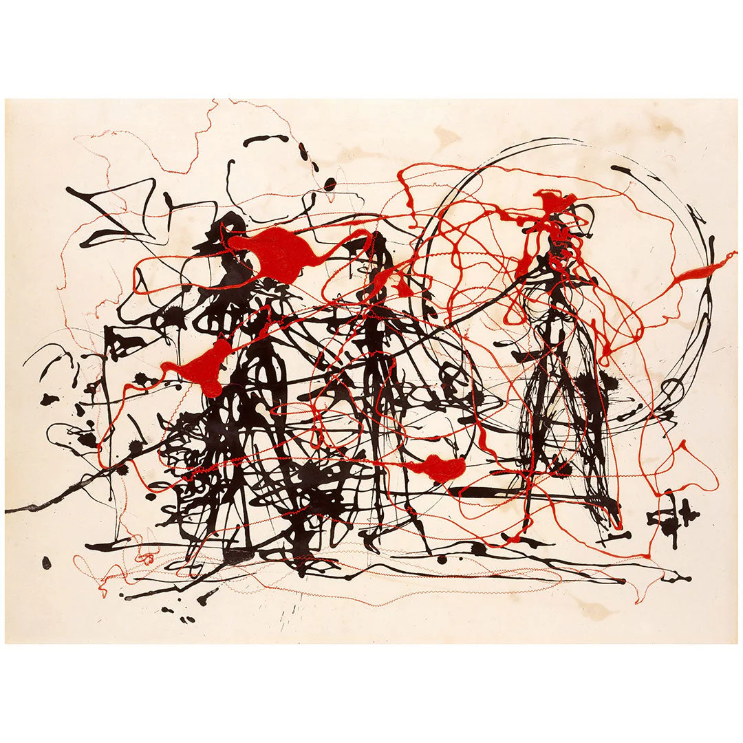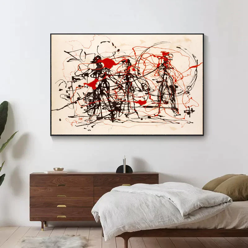 A calm white background sets the scene for a skirmish like no other. Black and red lines come together, creating an abstract sense of movement and conflict. Eplore this intriguing visual battle, where minimalism and expressive lines collide.