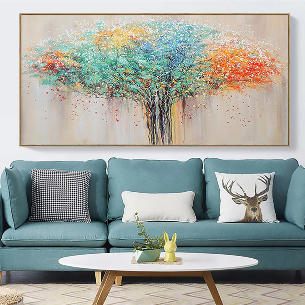 Look at this wondrous, colorful spectacle! With a rainbow of colors, this majestic tree stands tall and proud. The beautiful details and a stunning color palette make this the perfect piece to add vibrant elegance to your interior!â�