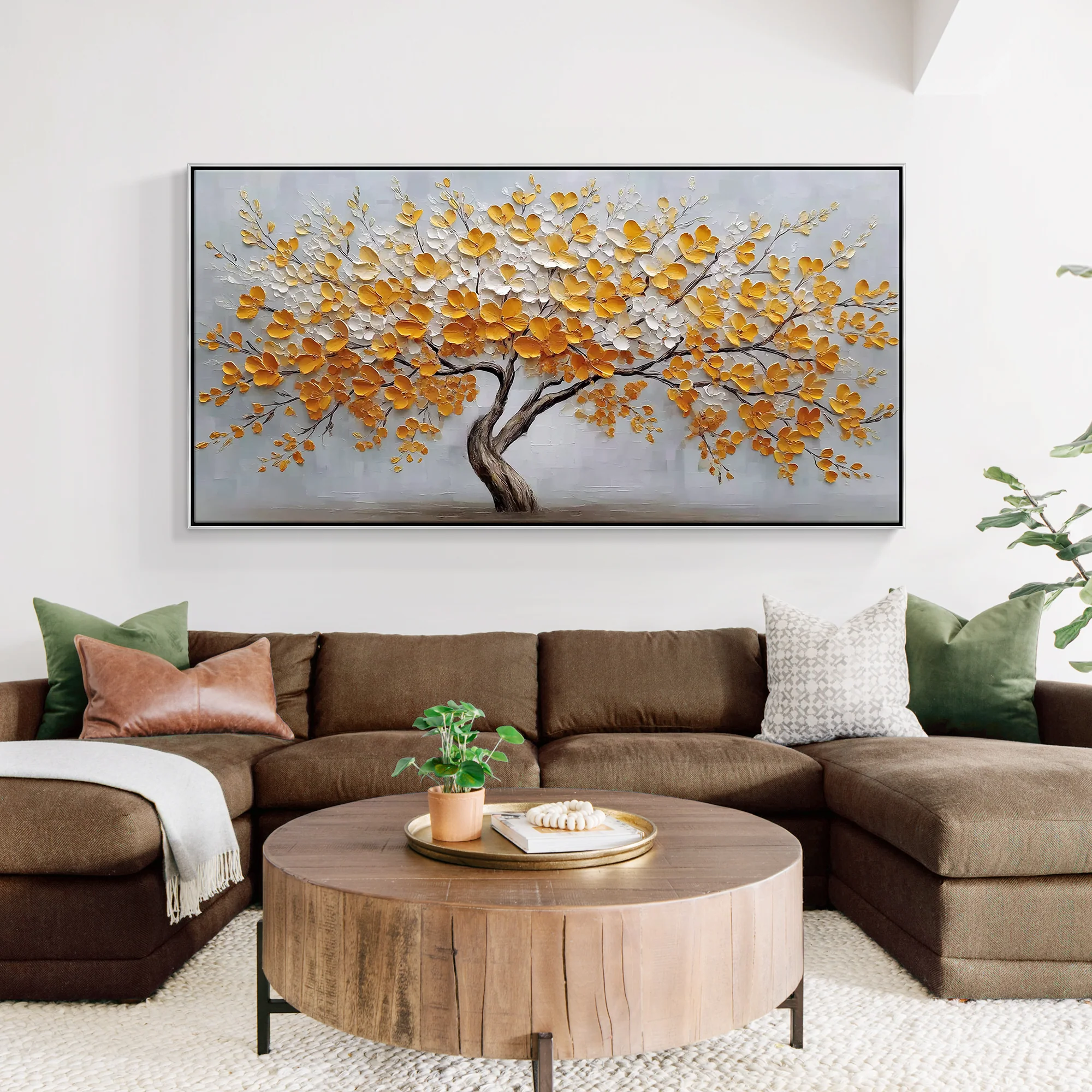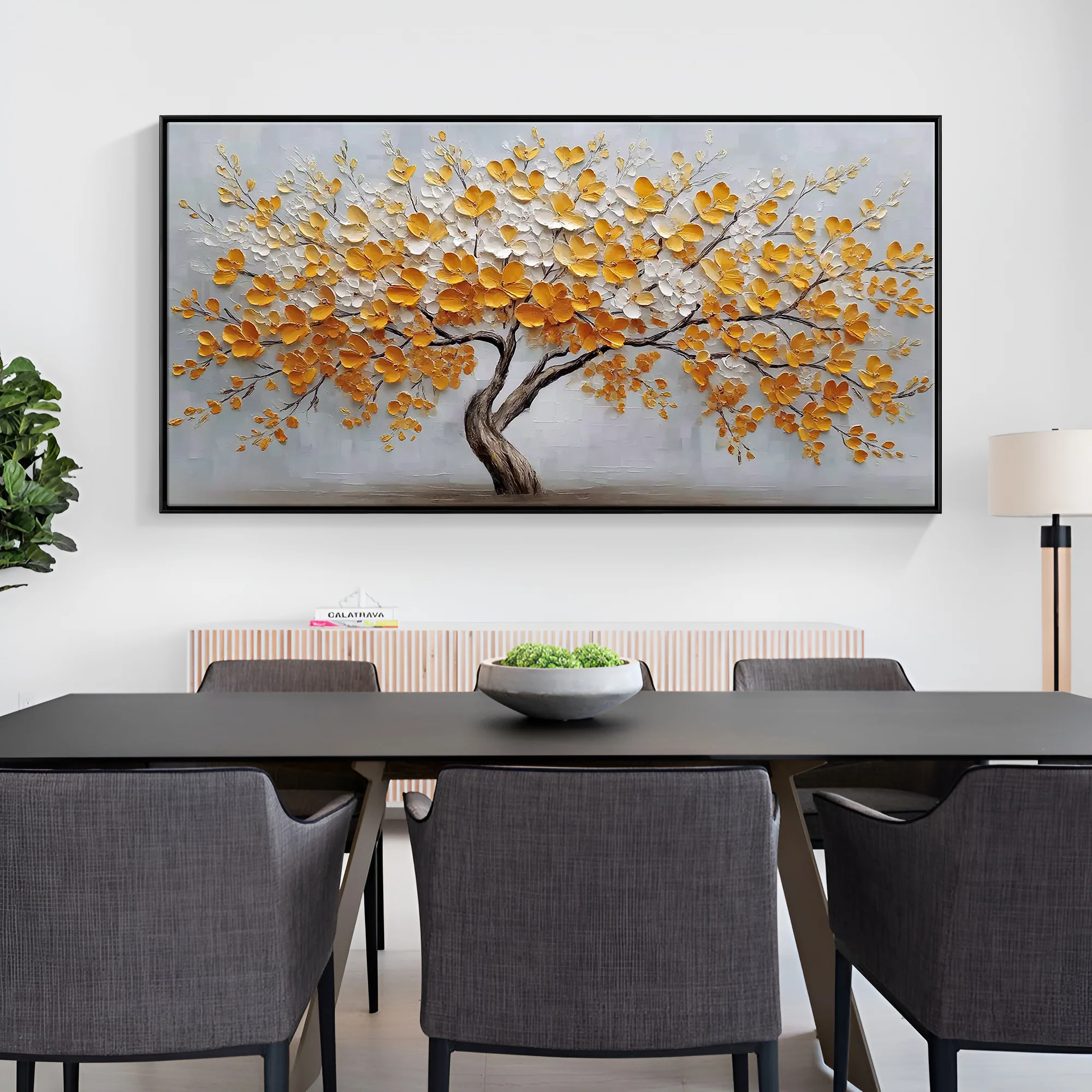Autumnal Tapestry: A Richly Textured Floral Canvas Painting for a Warm Interior