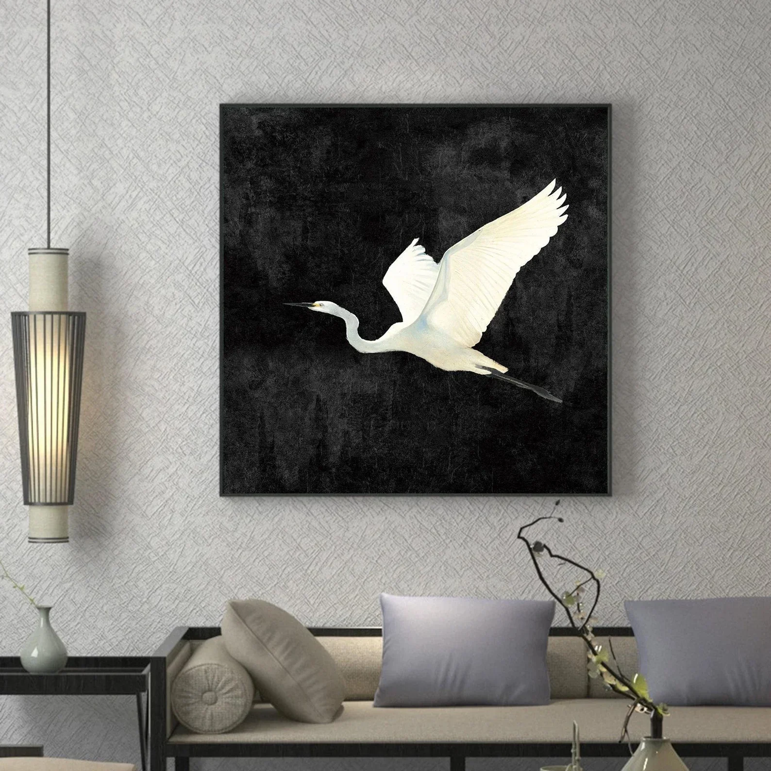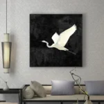 The White Egret captures the elegance of nature in flight. The contrast between the bird’s pure white feathers and the dark background is striking, making this a powerful and unique addition to any home interior!
