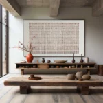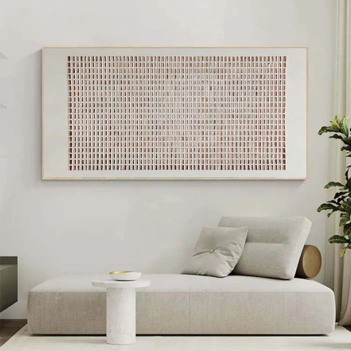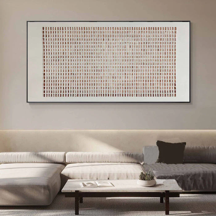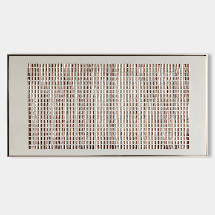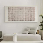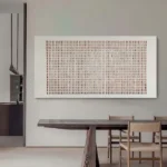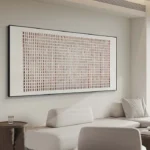 This piece feels as if it’s slowly breathing, like something alive yet standing still. The soft, steady lines and warm, grounded colors carry a quiet strength. It might be sand, or time, or even a language we once knew. The longer you look, the more it gently reveals to you!