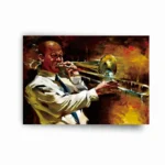 Experience the energy of live jazz with this vibrant painting. The musician’s intense focus and the bold colors bring the scene to life, making it a perfect addition for anyone who love music.