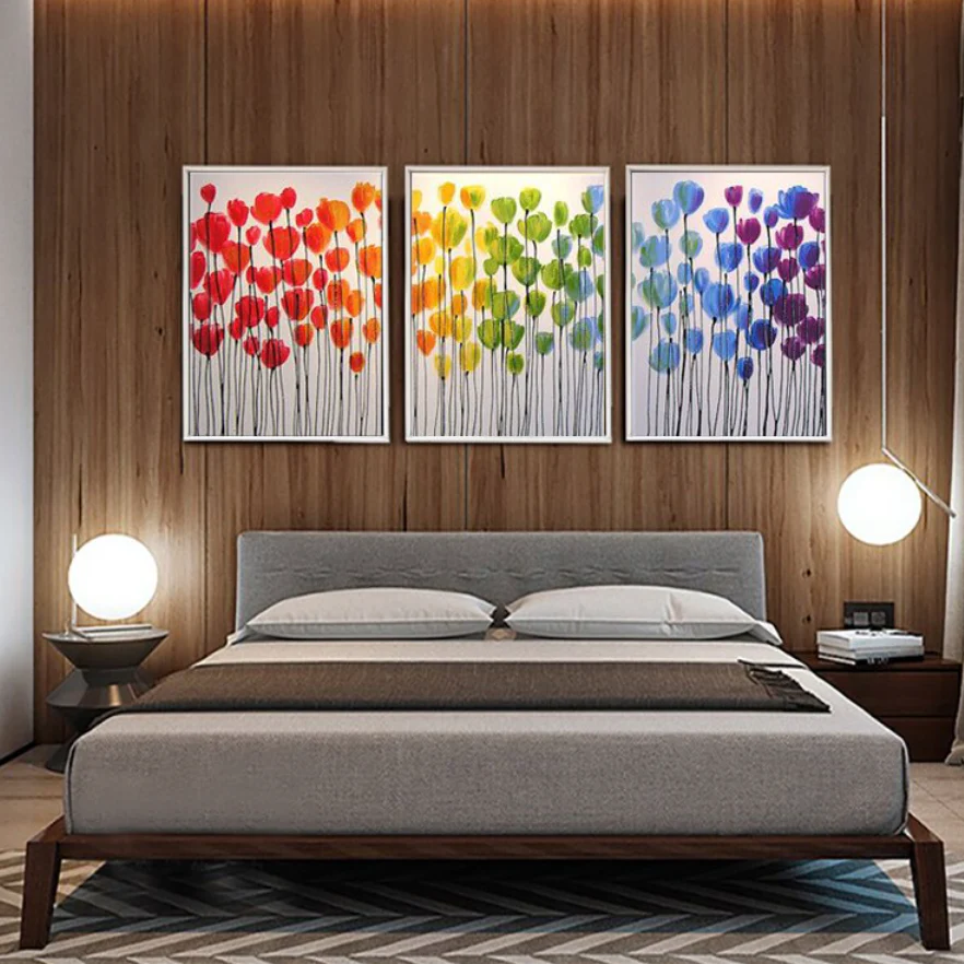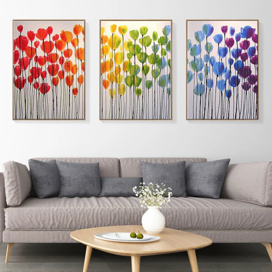 Did you know that the tulip is the national flower of the Netherlands? Inspired by these colorful fields, is this vibrant canvas set ‘Tulip’. The rainbow of colors makes this set always stand out, like a flower in a field!