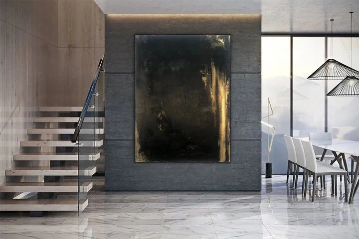 Golden Nebula: A Luxurious Contemporary Abstract Wall Art in Black and Gold
