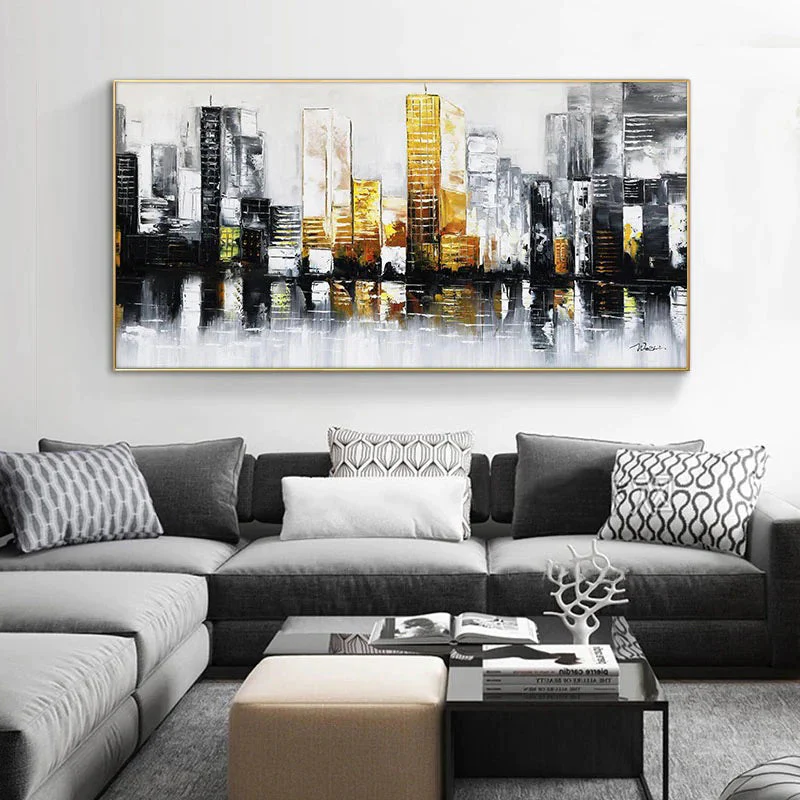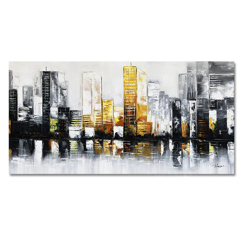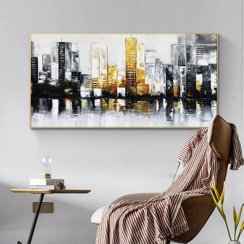A cityscape like no other, this piece shines with glowing towers and serene reflections. It’s a celebration of modern life, blending bold architecture with quiet elegance. Transform your walls with this striking view of the ever-changing, urban world.