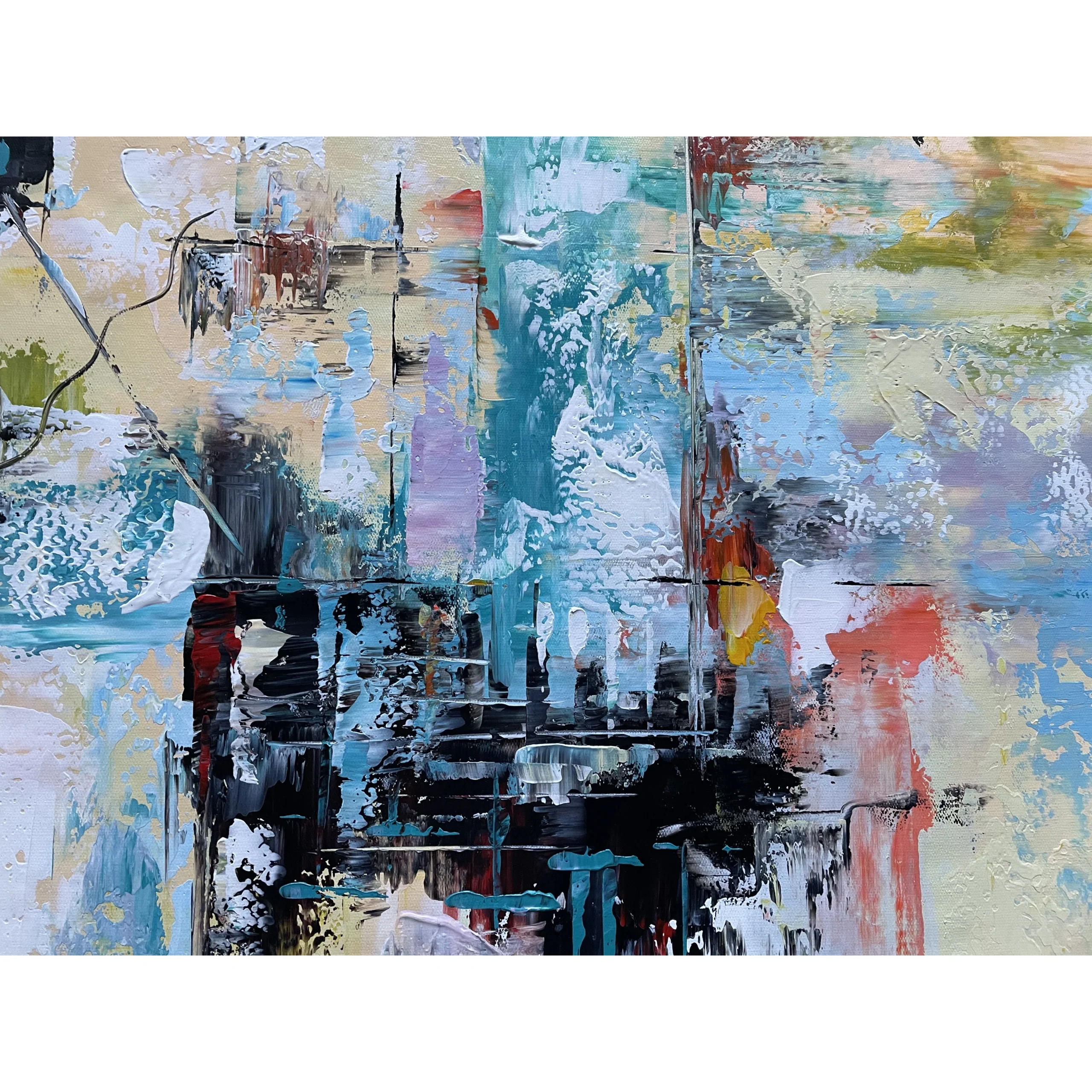 We all have different ideas of a utopia, a perfect promised land where all our dreams come true. This magnificent abstract art piece tries to paint this ideal picture. With loads of different colours smoothly flowing into each other, this painting will always surprise you!