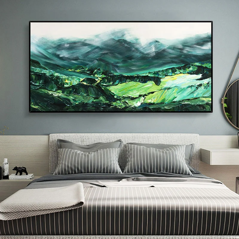 This painting captures the lush beauty of rolling green hills. The vibrant green colors and dynamic brushstrokes bring the landscape to life, adding a touch of nature’s tranquility to any space.