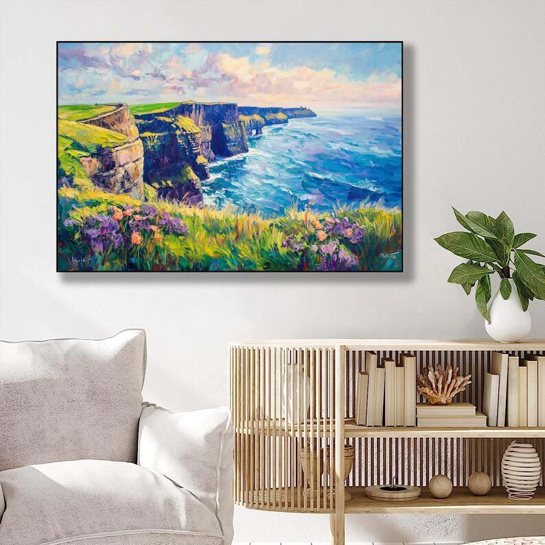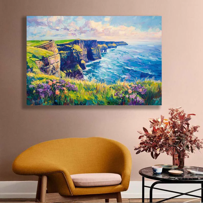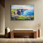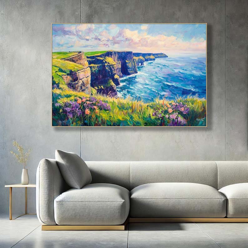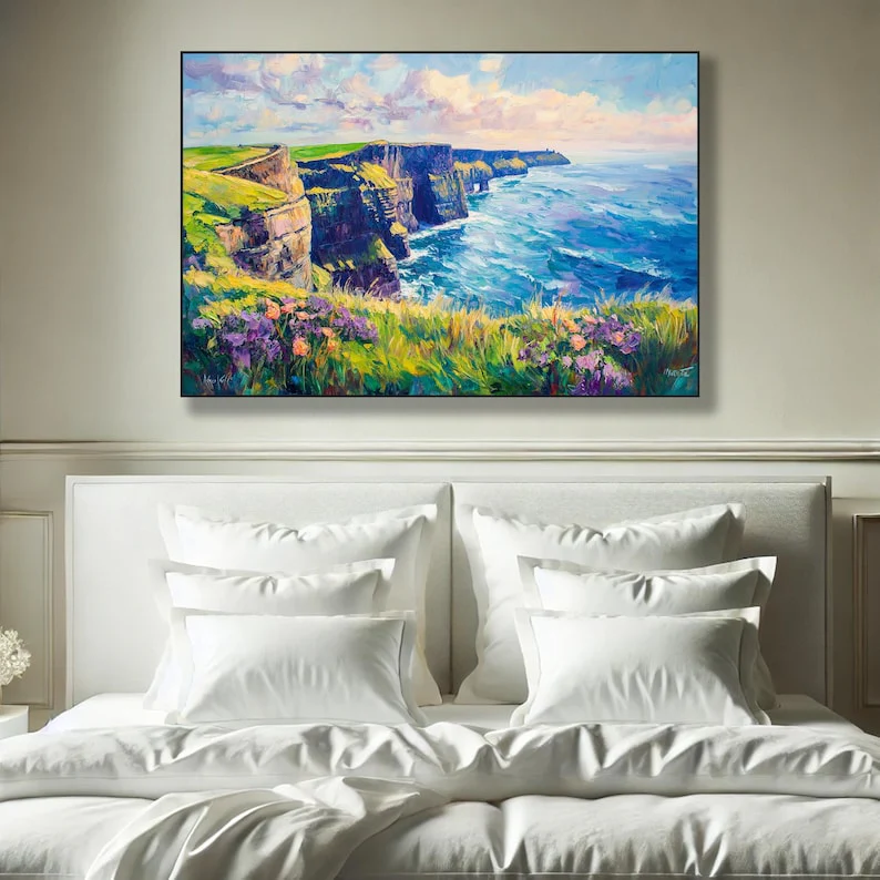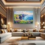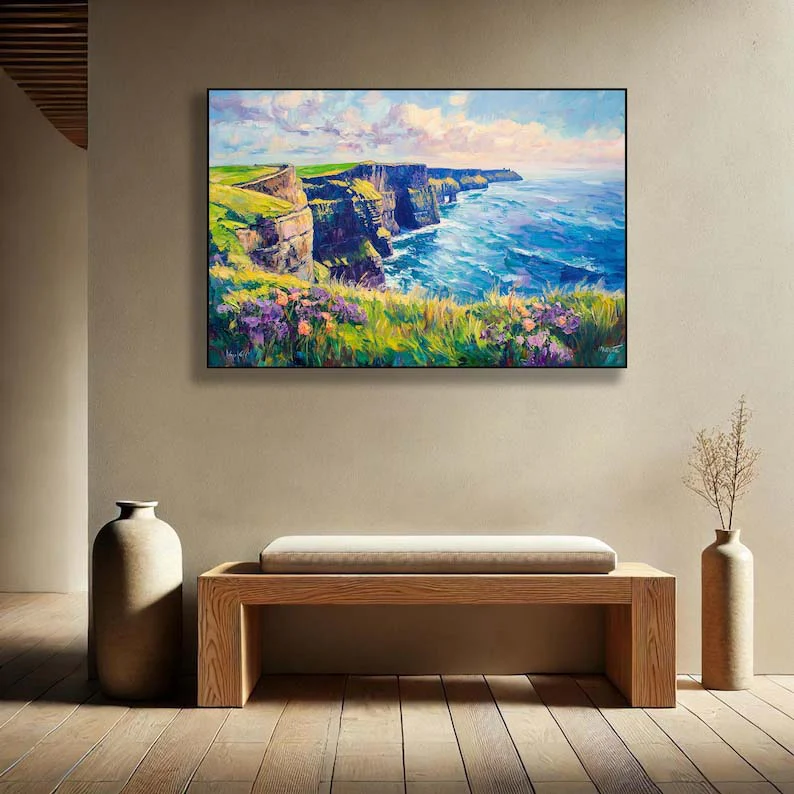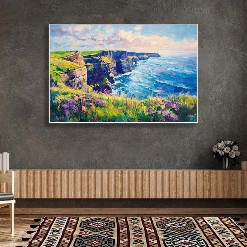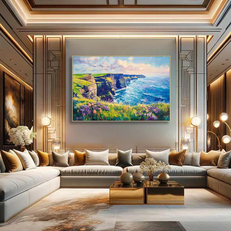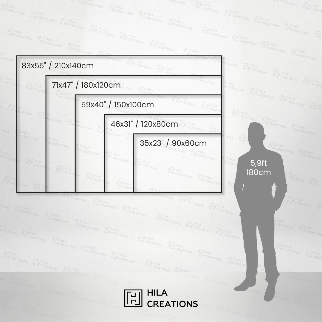 The flowing shapes guide your eye from one corner to the next, almost like a journey. The strong black colors and white tones create a nice contrast, making the room feel sharp and modern and the soft curves keep it relaxed. The piece that blends into any home interior!