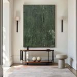 As a large-scale anchor for a thoughtfully designed room, “Veridian Depths” makes a powerful yet understated impact. Its organic elegance and minimalist sensibility make it a perfect fit for Modern, Rustic, or Wabi-Sabi interiors. Placed in a living room, entryway, or a quiet study, this abstract wall art will bring a sense of natural harmony and sophisticated, earthy style to your home.