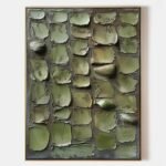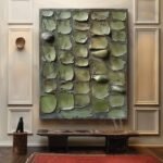 This artwork is a sophisticated choice for interiors that celebrate natural elements and minimalist design. It serves as a stunning focal point in a modern living room, a serene bedroom, or a chic office, bringing a sense of organic tranquility indoors. With its strong vertical presence, “Veridian Mosaic” is a piece of tactile art that soothes and inspires.