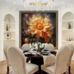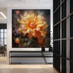 In ‘Versilla,’ a radiant orange flower takes center stage, kissed by the sun’s glow. The exquisite realism-style and radiating warmth of this artwork make it a vibrant addition to any space or room.