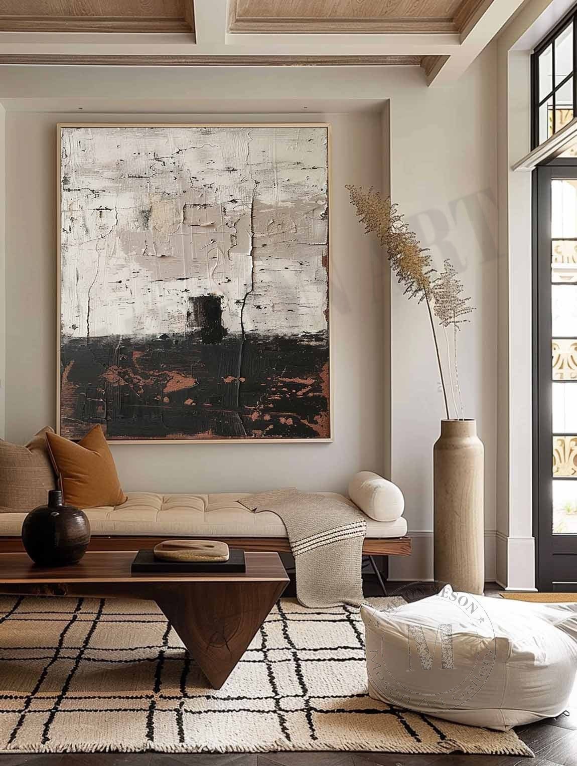 Vestige of Time: Raw Wabi Sabi Textured Abstract Painting in Black and White