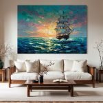 Set sail on a thrilling adventure with “Voyage into Light.” This magnificent canvas painting captures a majestic tall ship bravely navigating the open sea, its sails full as it heads toward a brilliant, hopeful sun. It is a powerful ode to exploration, courage, and the timeless romance of the ocean. This artwork doesn’t just depict a scene; it inspires a journey, filling your space with a sense of boundless possibility and epic beauty.