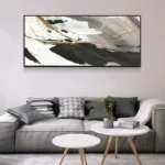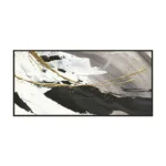 This astonishing black and white wave depicts the power and relentlessness of the ocean, through the use of the two golden vertical strokes. This painting really comes alive and feels like a moving, mighty, majestic wave.
