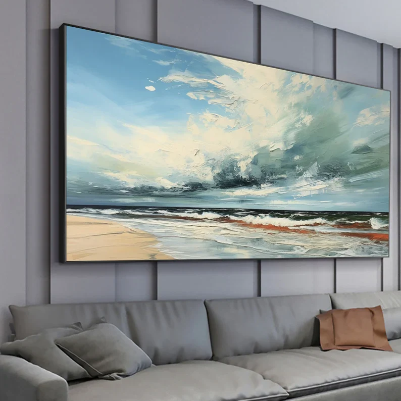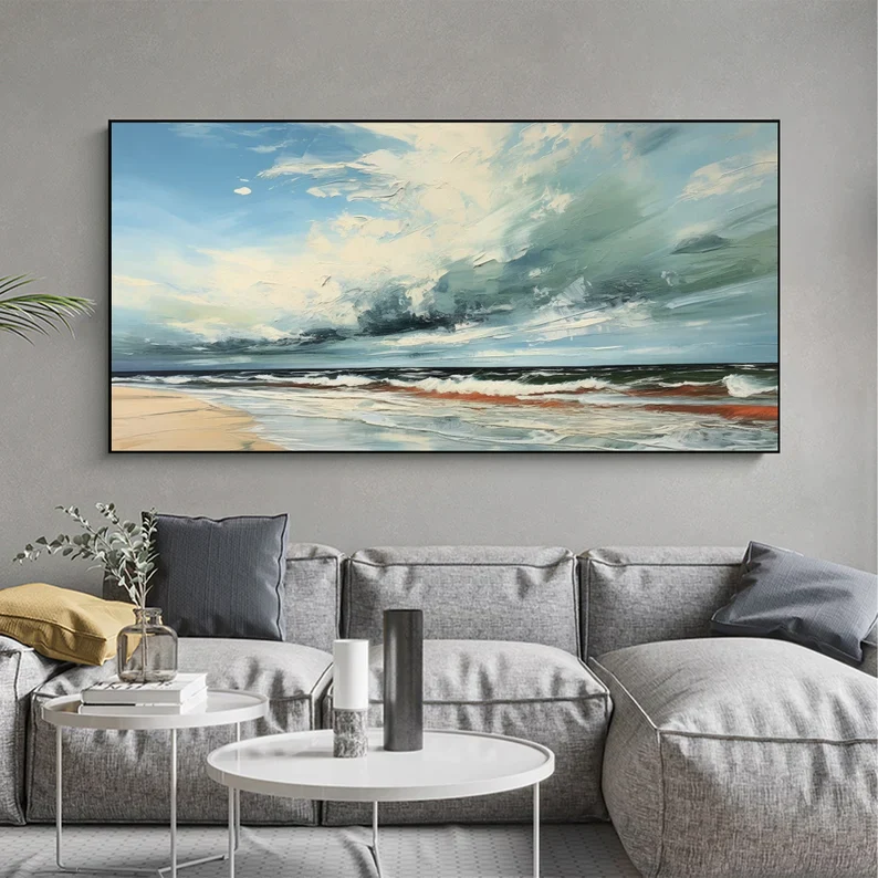 Sun-Kissed Shore: A Lively Coastal Beach Canvas Painting