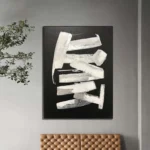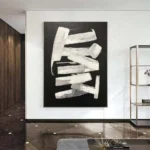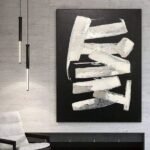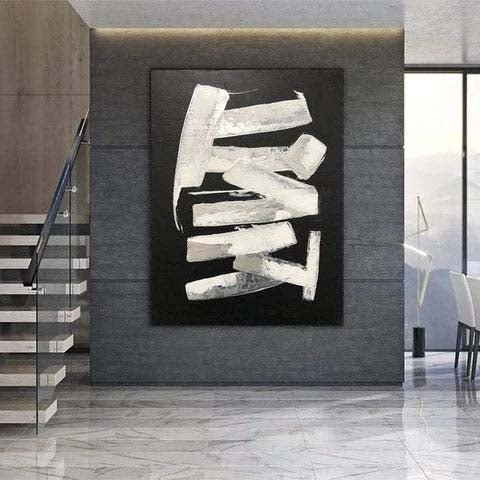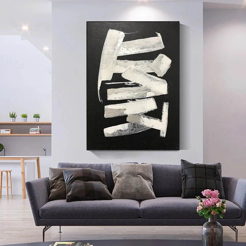 Sometimes less is more, and this unique modern artwork shows that with great finesse! With only a few white strokes, a beautiful contrast and a dynamic composition is created, that will astonish anyone who looks at it! â�
